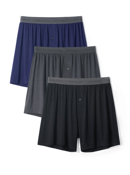 3 Pack Men's Bamboo Rayon Boxers – Breathable, Cool Shorts with Button Fly