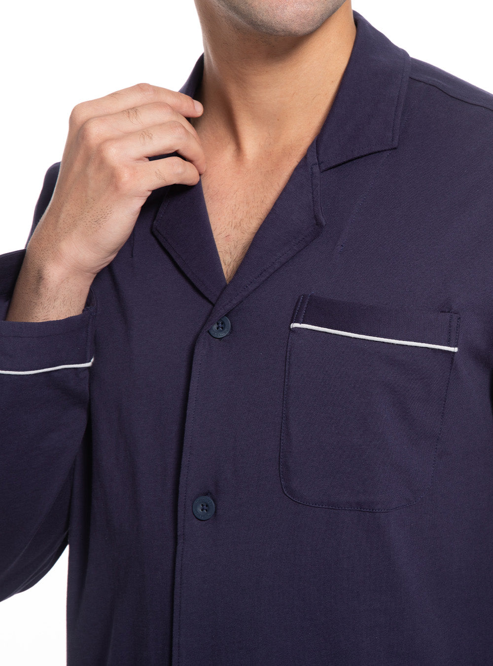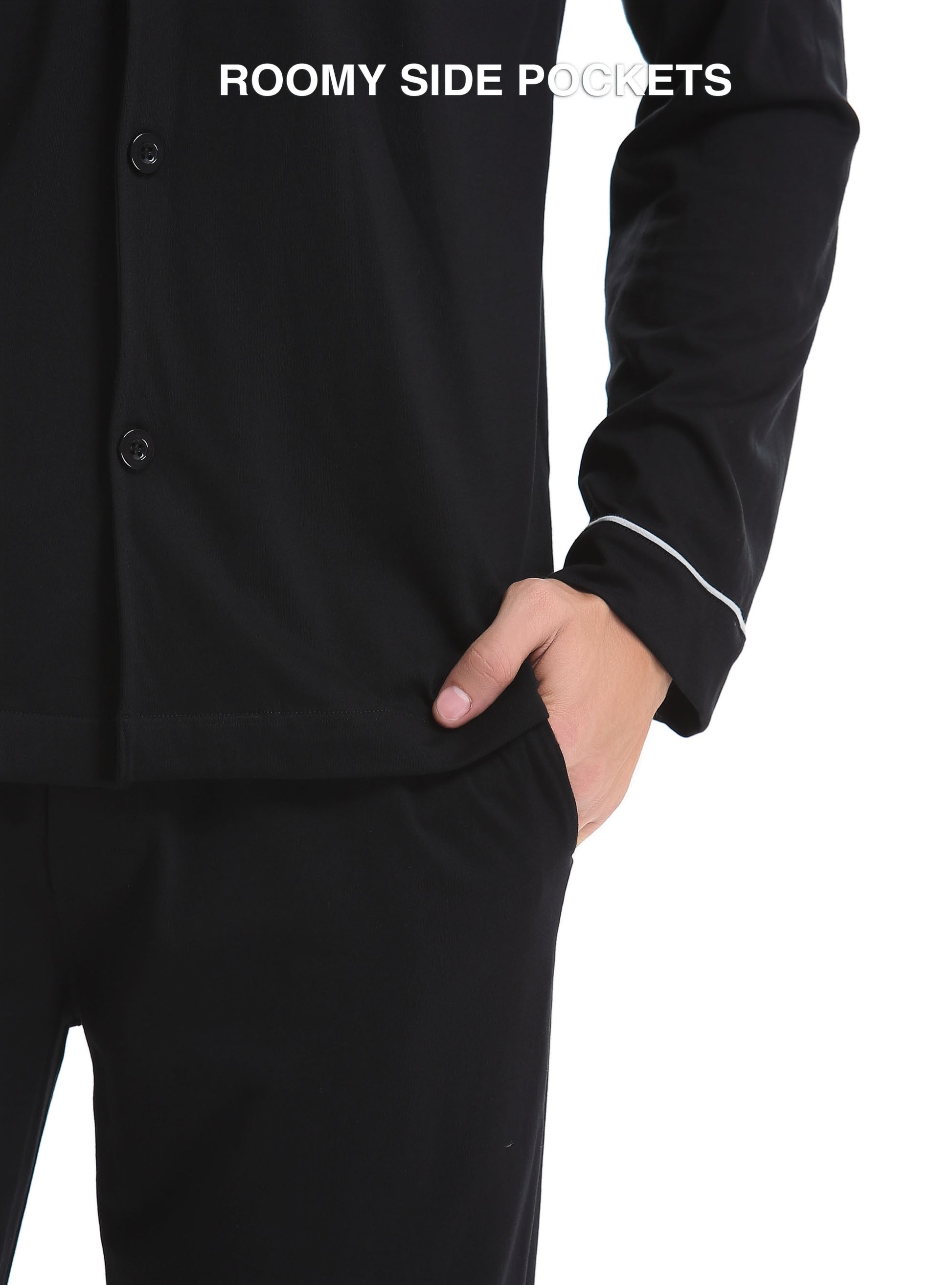 Men's Cotton Pajama Set – Soft Long Sleeve Sleepwear with Notched Collar, Pockets & Front Fly